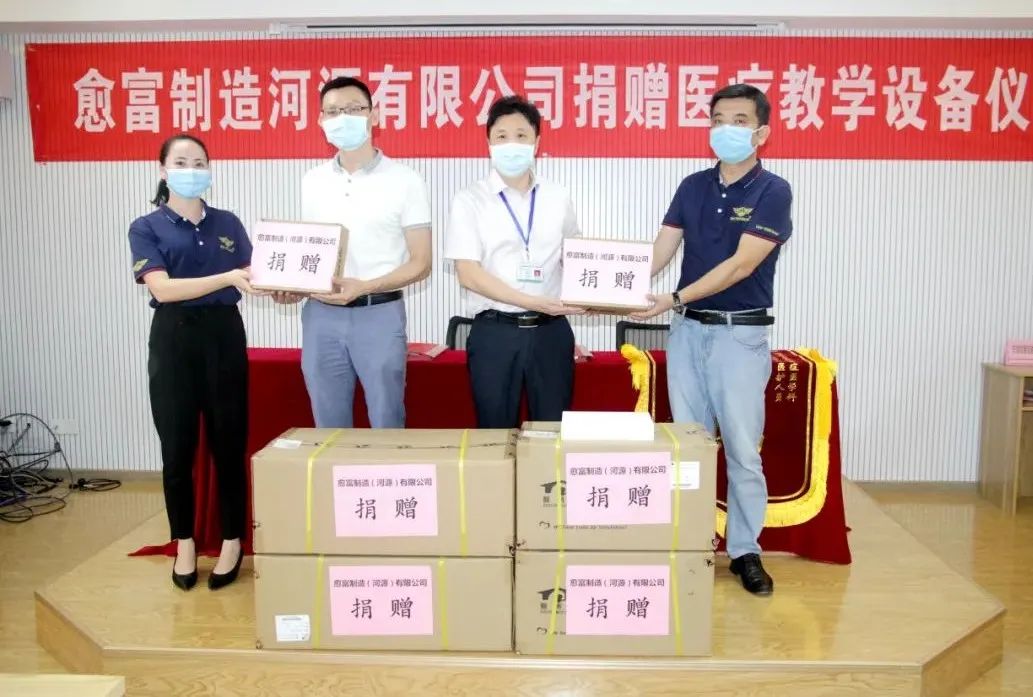愈富制造(河源)有限公司行政总监姚军表示,得益社会,回馈社会,公司董事长黄创艺先生,一直以来热心社会公益事业,带领公司管理层屡次参加慈善捐助、救灾活动。在得知市人民医院临床技能培训中心缺少部分培训器材时,决定向医院捐赠价值15万元的气管插管技能培训模型和心肺复苏模拟系统,为医院的临床技能培训工作尽绵薄之力。