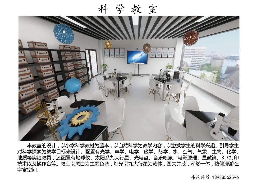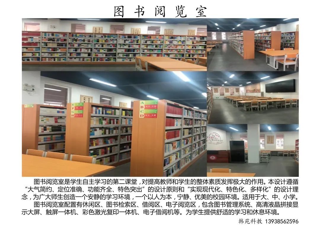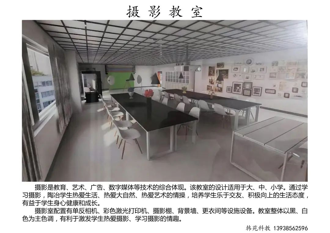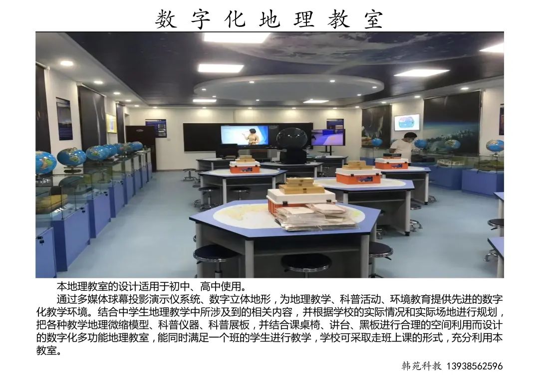 大、中、小学校用数字化书法教室、国学教室、特色美术教室、陶艺教室、版画教室、国画教室、扎染教室、音乐教室、录播教室、数字地理教室、数字历史教室、科学教室、创客教室、机器人教室、心理教室、劳技教室、木工教室、理化生实验室、图书阅览室等各种功能教室,功能教室包含有教学软件(与教材配套)、硬件、设备、环境装饰等,根据学校要求,整体进行设计、制作、安装、培训、材料供应及售后服务。