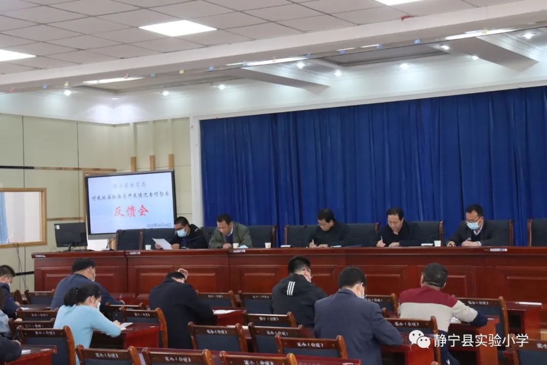 最后,督导组及我校班子成员、年级主任、三至六年级科学教师在会议室召开了反馈会。督导组指出:一是学校领导倾心倾力,发展并培养理化相关专业的科学实验专职教师,科学教师专业性强;二是学校将科学备课计划纳入学校集体备课制度,同时各教研组制定了详实的科学教研计划;三是科学课堂渗透了情感教育,并常态化开展;四是科学实验室做到了三净即地面净、桌面净、仪器净;五是管理机制健全,科学实验室做到了专人管理,责任到人;六是教学仪器和账务管理规范,做到了底子清、责任明;七是档案管理规范,安全管理台账资料扎实;八是做到了三落实,即落实了学校对科学实验教学常规的检查、听课,落实了家长和学生对教师的评教问卷,落实了学校对科学教师的考核评估。