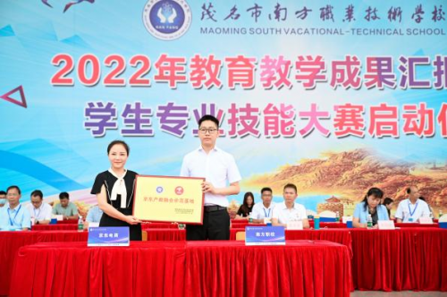 6月21日,在茂名市南方职业技术学校2022年教学成果汇报会暨学生技能大赛启动仪式上,江苏京东金科信息技术有限公司(简称京东)与茂名市南方职业技术学校(简称茂名南方职校)在茂名高州两级教育行政部门、金山开发区党政领导以及全体师生的万人见证下,举行校企合作签约授牌仪式。这是京东在粤西地区同类型中职院校中投建最大规模的校园实训中心。
