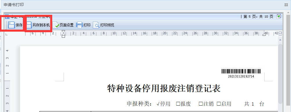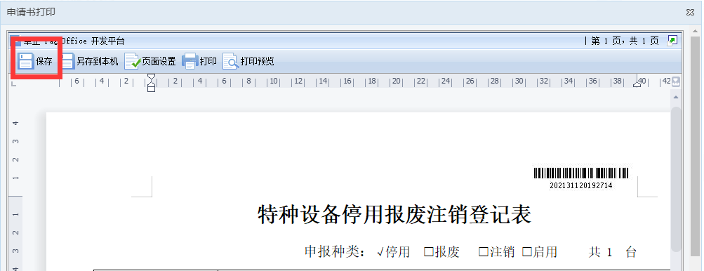 点击打印申请书按钮,弹出的申请书窗口,点击保存。