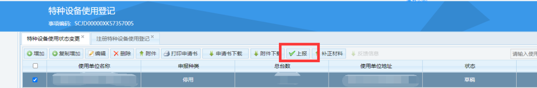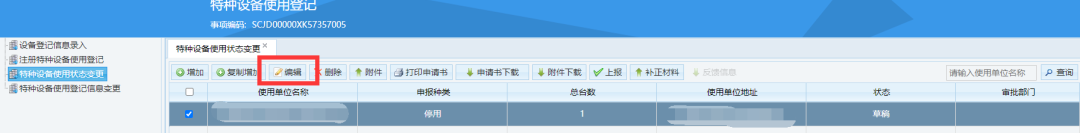 特种设备办理变更或停用,需要先把设备上报,审核通过之后才能办理设备状态或者信息变更