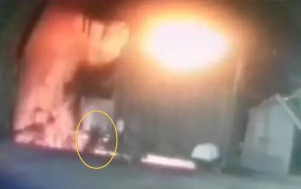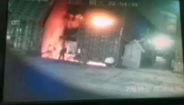 监控视频中,一名人员独自走到正在运作的7号转炉喷渣口,炉口壁上呈橘红色。他站在炉口,探头往里看了看,随后取下头上的帽子,往炉口走了几步,再探头往里看了看,随后纵身一跳消失在监控中。看到前述画面,翻拍视频的人员说,一下就没了。