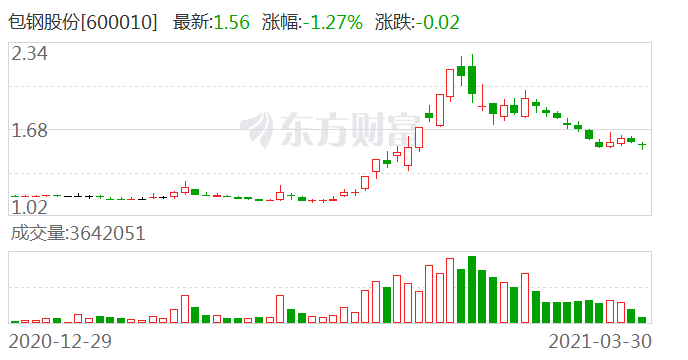 包钢股份30日早盘低开1.27%,最新报1.56元,总市值711亿元。