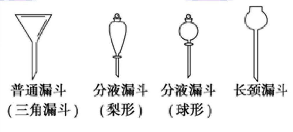 种类很多,可分为三角漏斗(短颈漏斗)、分液漏斗、长颈漏斗、安全漏斗、吸滤漏斗等。