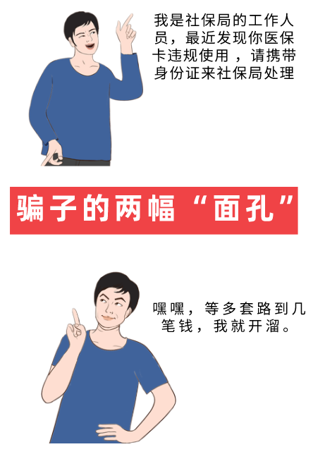 还有不法分子伪装成西安社保工作人员,谎称参保人名下的医保卡涉及违规操作、违规使用,让参保人带身份证去xx路紧急处理。