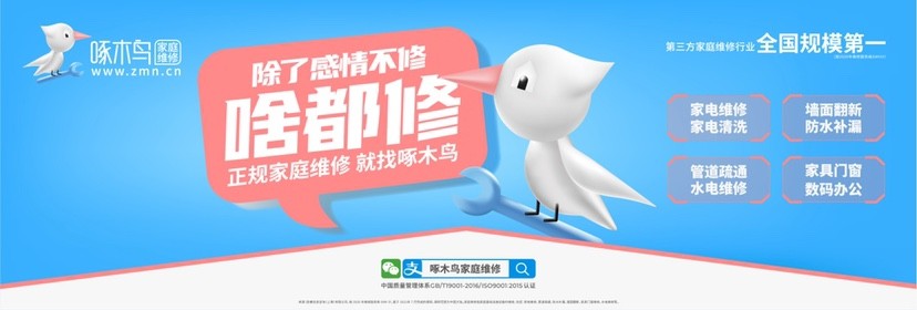 成立于1995年的啄木鸟家庭维修,二十六年来专注于家庭维修服务垂直领域,并率先探索规模化、数字化运营,致力于借助数字化手段从根本上解决家庭维修行业的痛点。如今,啄木鸟作为一站式数字化家庭维修品牌,已成为第三方家庭维修行业全国规模第一(按 2020 年维修服务商 GMV 计算)① 的行业领头羊,且在用户中建立起了良好的口碑,更凭借一句除了感情不修,啥都修的广告语被大众记住。