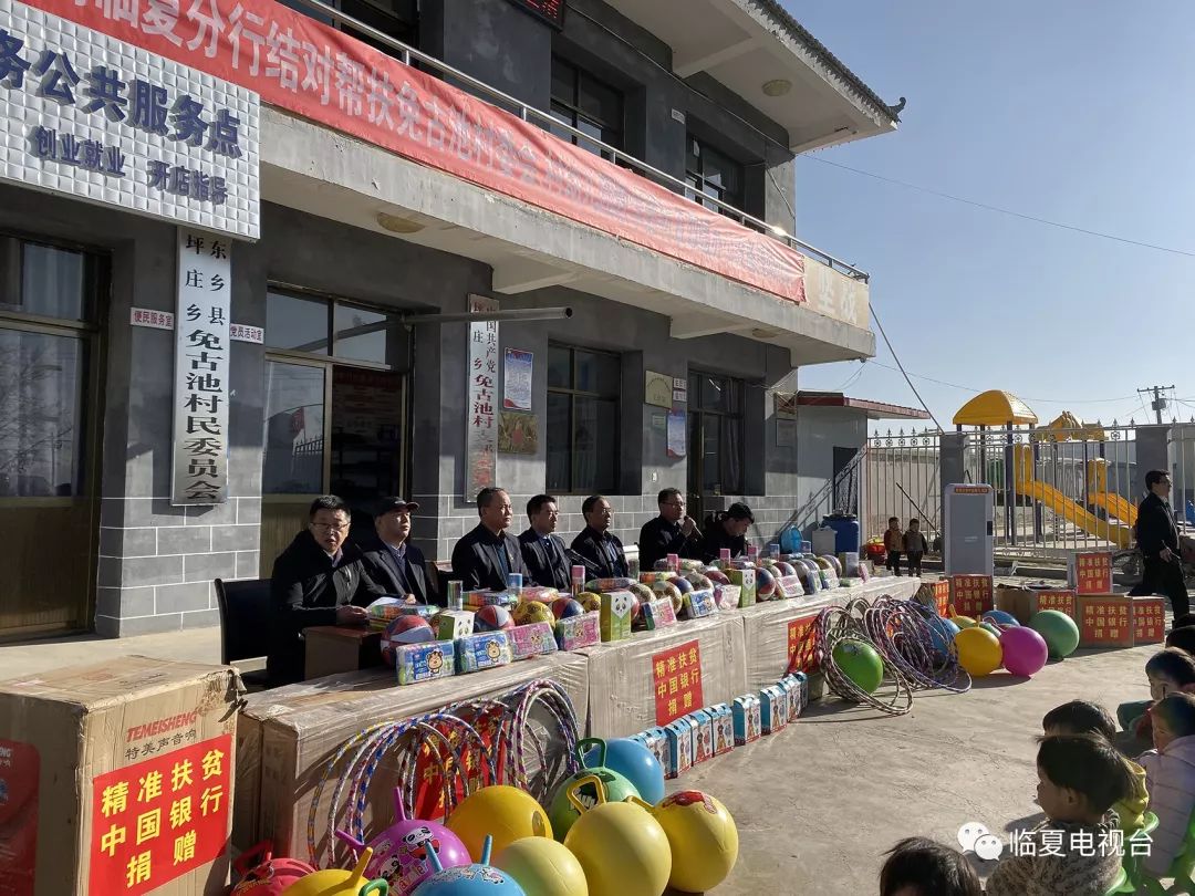 中国银行临夏分行想贫困群众之所想、急贫困群众之所急、解贫困群众之所困,向免古池村捐赠价值5.3万元物资用于村委会、村幼儿园教学器材及取暖办公设备建设。