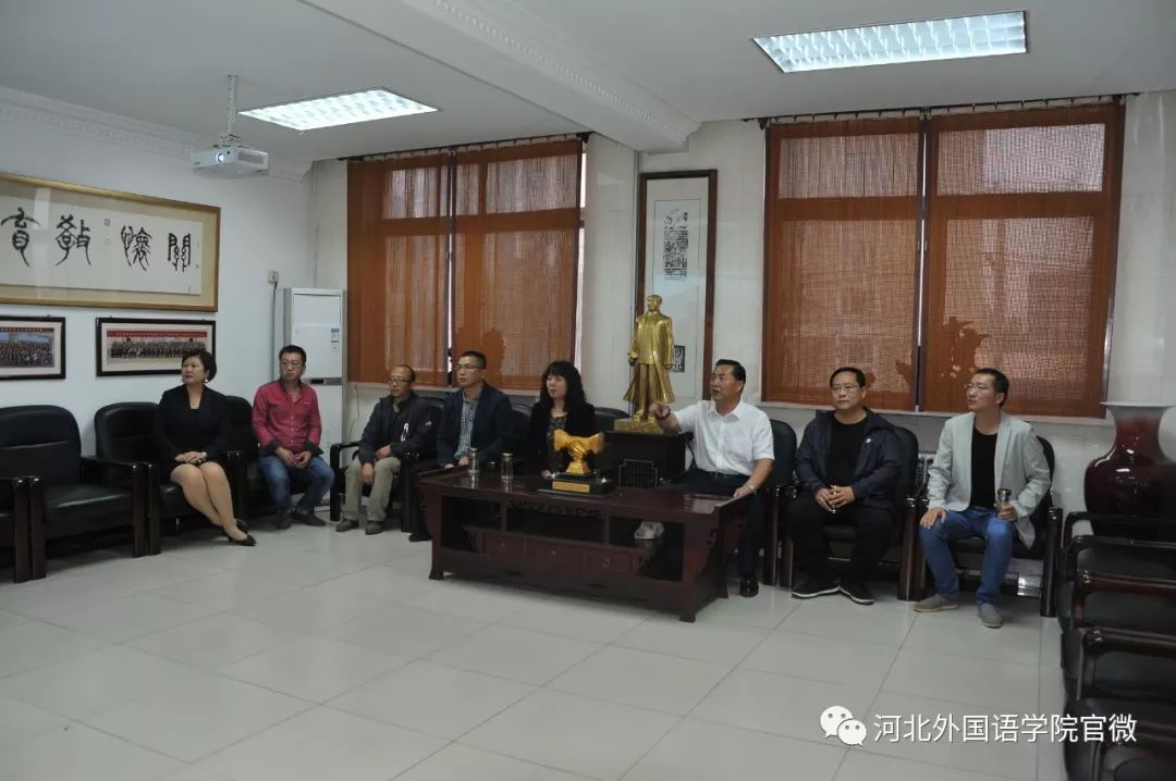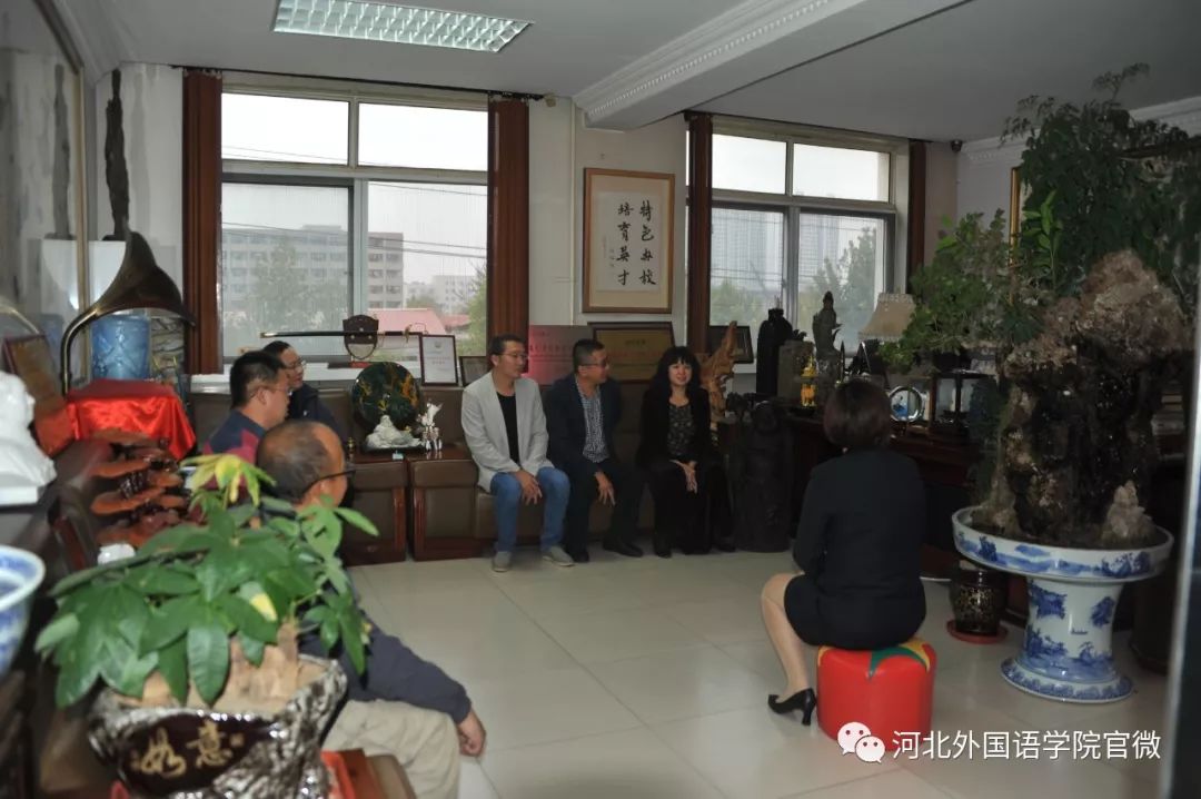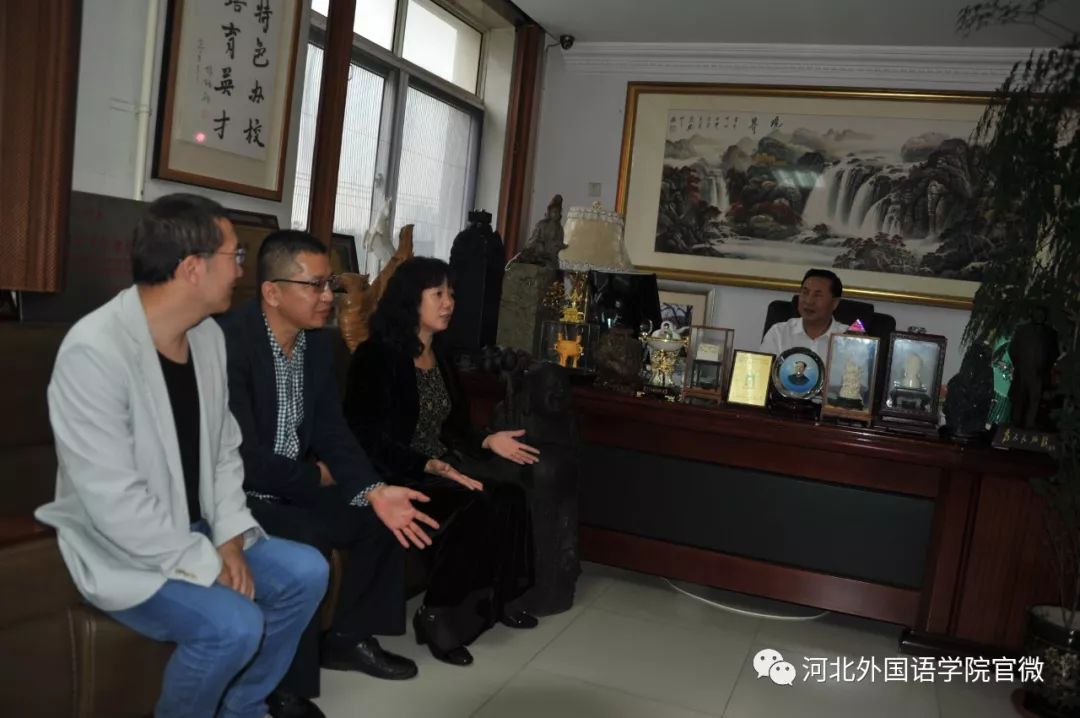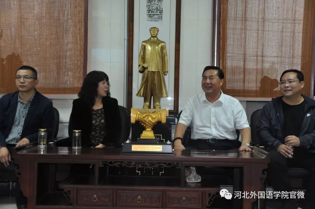 河北外国语学院董事长、校长孙建中教授亲切接待了陈总一行,并对他们的无偿捐赠表示感谢。