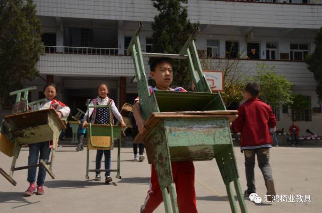 捐赠仪式结束后,学生在老师的组织下将旧桌椅搬离教室,并将教室打扫干净