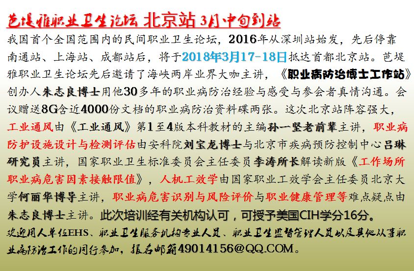 好消息,芭堤雅职业卫生论坛北京站3月17-18日进行,欢迎大家报名参加。