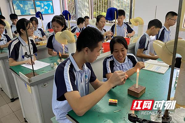 初中化学一年时间内需要掌握的知识点仅集纳在两本书中,但仅仅通过叠起来还没有4厘米厚的书本,还难以达到中考理想成绩的层次。怎么样才能帮助学生更好学习化学呢?株洲建宁中学化学教研组组长唐丹告诉记者,为了答好这道题,教研组通过实践探索发现,往往是书本之外的各类实验,更能帮助学生了解、掌握知识点,同时也能发挥实践动手从而熟记于心的作用。