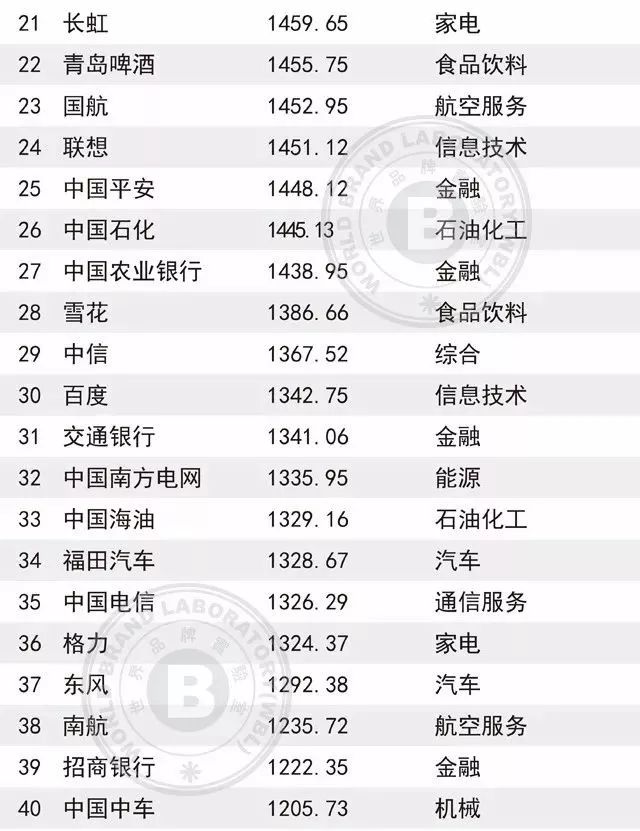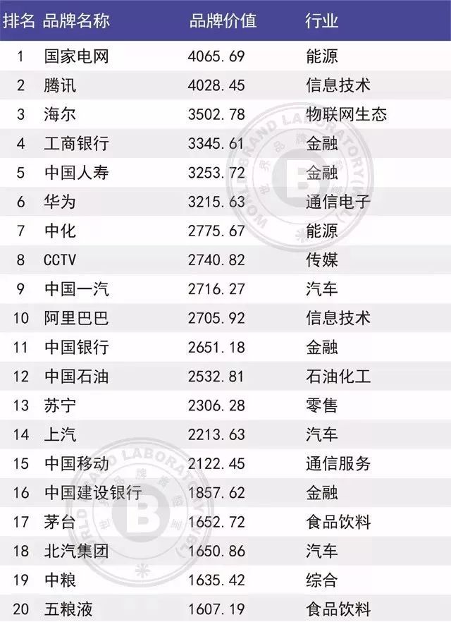 国家电网、腾讯和海尔名列三甲,41个中国品牌的价值超过1000亿